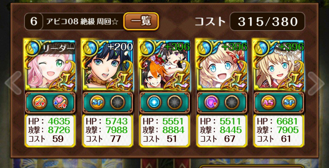 順番替えたら、ファムの蓄積がうまくたまらなかったのでこの順で。
