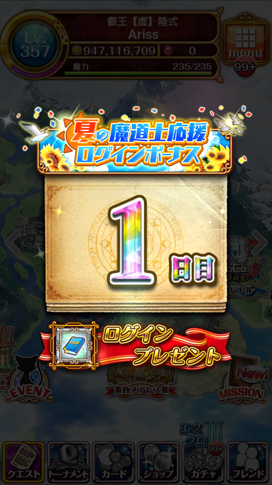 キャンペーンスタートに伴って、ログインボーナスが始まったみたいですね。