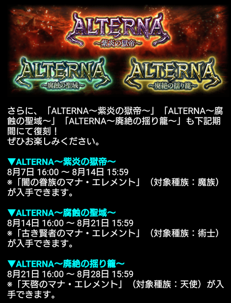 新イベント告知と夏の魔道士応援キャンペーンとALTERNA