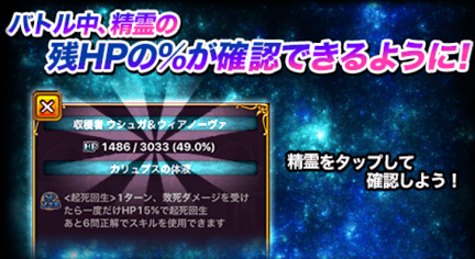 最後に、突然バージョンアップで追加された自精霊のHP%表示!