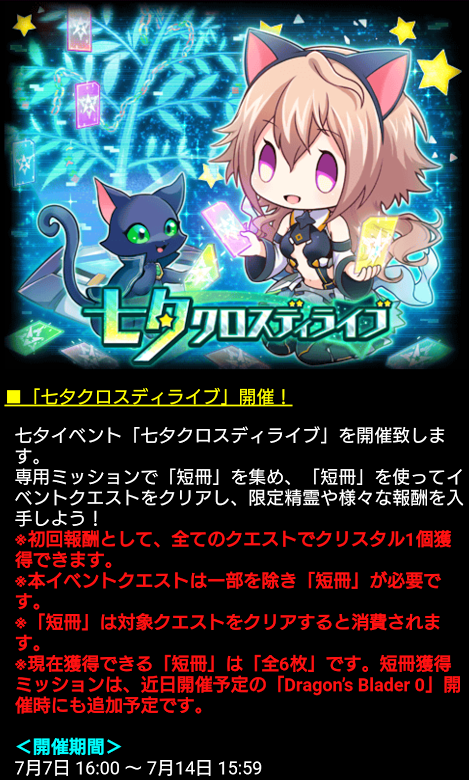 そろそろ今日あたりに始まらないと七夕の短冊ミッションに間に合わないと思うんですが…。