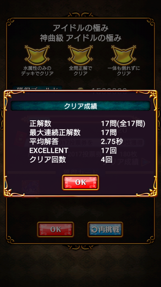 ブーストでクリティカル狙うには再挑戦が必要で、このクエスト消費魔力は50なので、いくら魔力があっても足りないです(;´Д`)