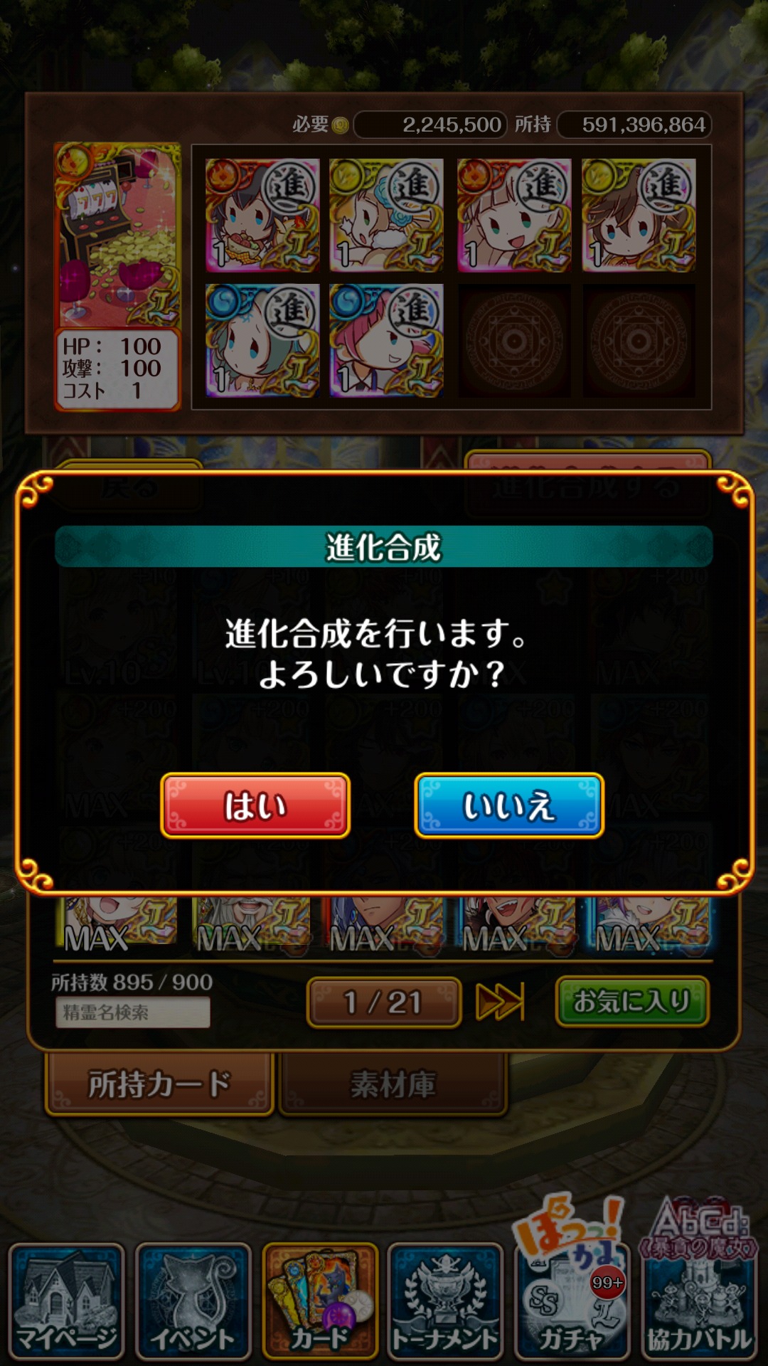 ラビリンス3の報酬精霊は、コインで交換したカード6枚を進化素材にして、ミッションでもらえるカードを進化することで使えるようになります。