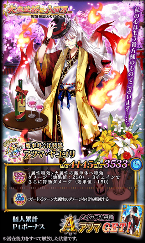 火単色だったらそれだけでHP&攻撃800アップするみたいです。
