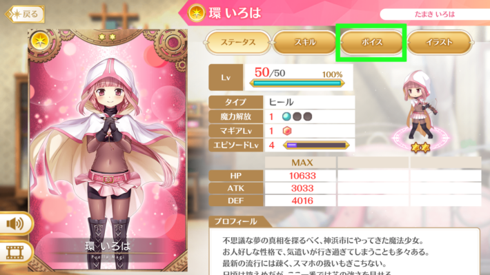 ボイスを聞きたい魔防少女を選択して…