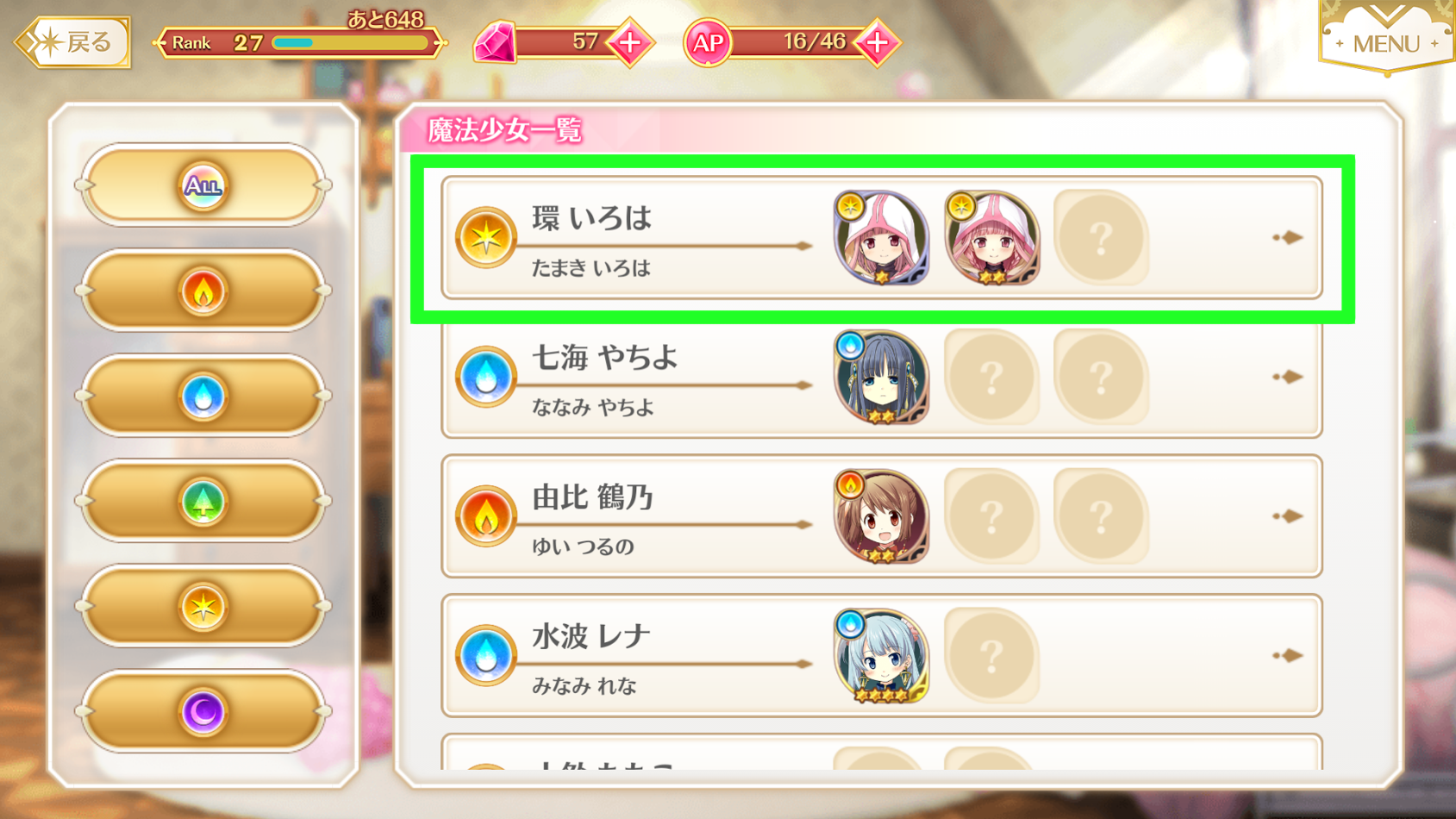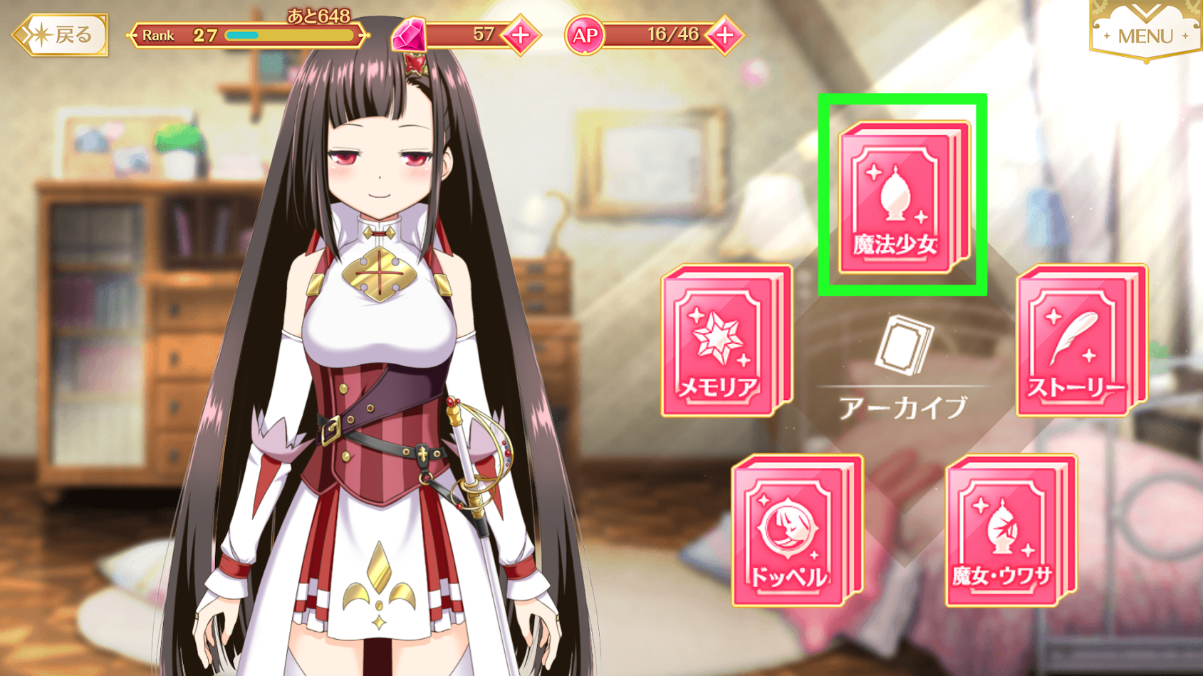 「魔法少女」をタップ。なんかささらちゃん、半目でゴメンね。