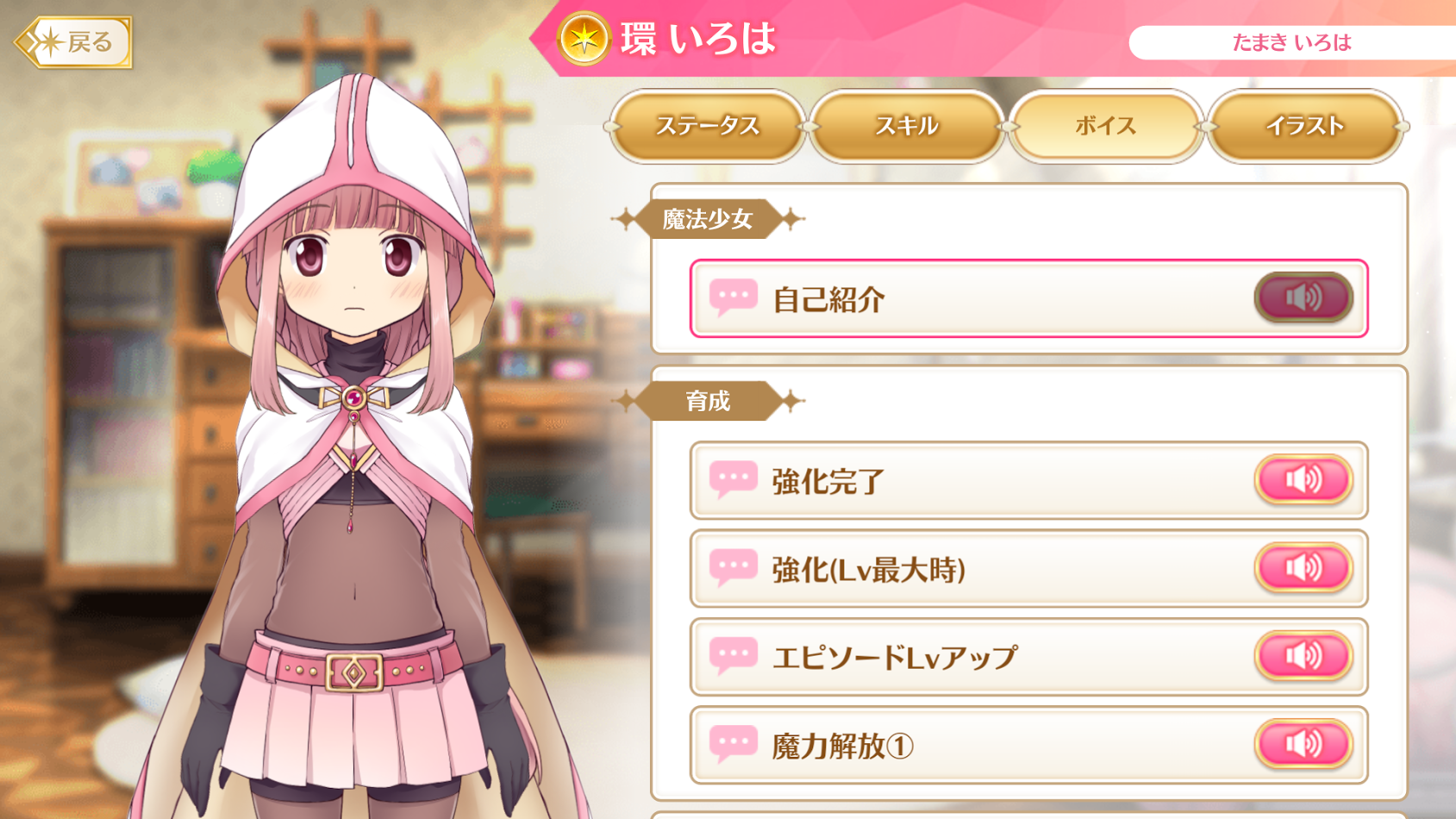 ボイスを聞きたい魔防少女を選択して…